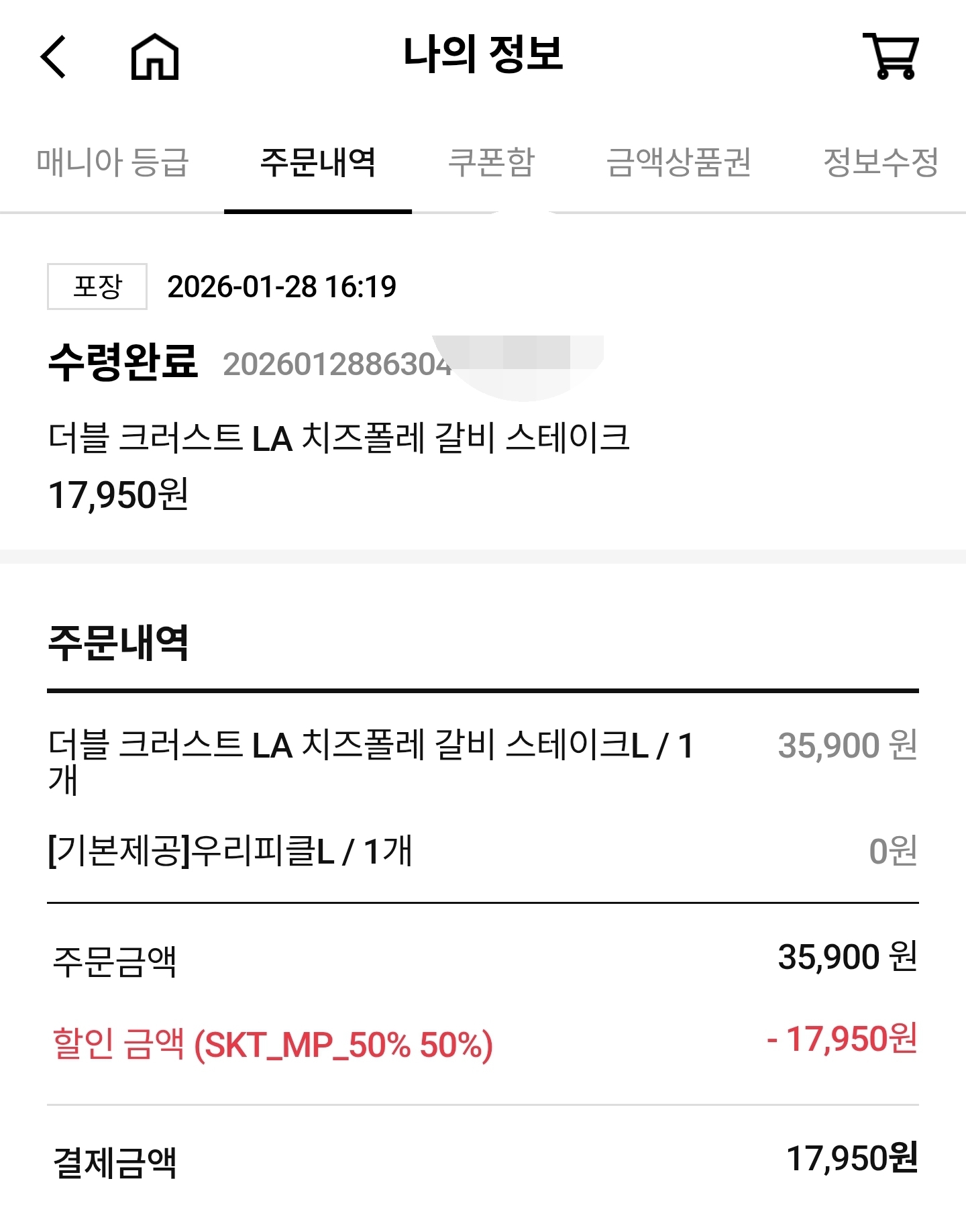 지난번 SKT50% 할인 이벤트는 패스했지만 이번에는 시켜보게 되었다.